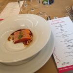 El viaje comenzó con el Crudo de Steelhead Azar de Ensenada, un testimonio de la pureza del Pacífico. El pescado, cortado delicadamente, ofrecía una textura suave y sedosa, balanceada por la acidez precisa del limón y el aceite, que despertó el paladar. Las pepitas de calabaza no solo añadieron un sabor terroso, sino un delicado crujir que contrastaba con la fluidez del plato. Fue la mejor bienvenida a la mesa de Baja.