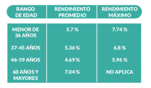 Rendimiento promedio y máximo de acuerdo a edad:
