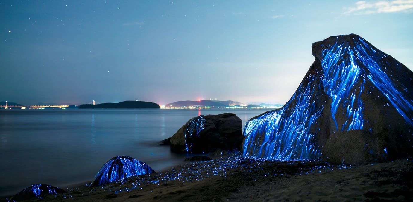 Es gracias a las llamadas «luciérnagas marinas» que podemos tener estos luminosos espectáculos a lo largo de las costas. Estas playas en el país asiático se llenan de las pequeñas pero brillosas criaturas durante los meses del verano.