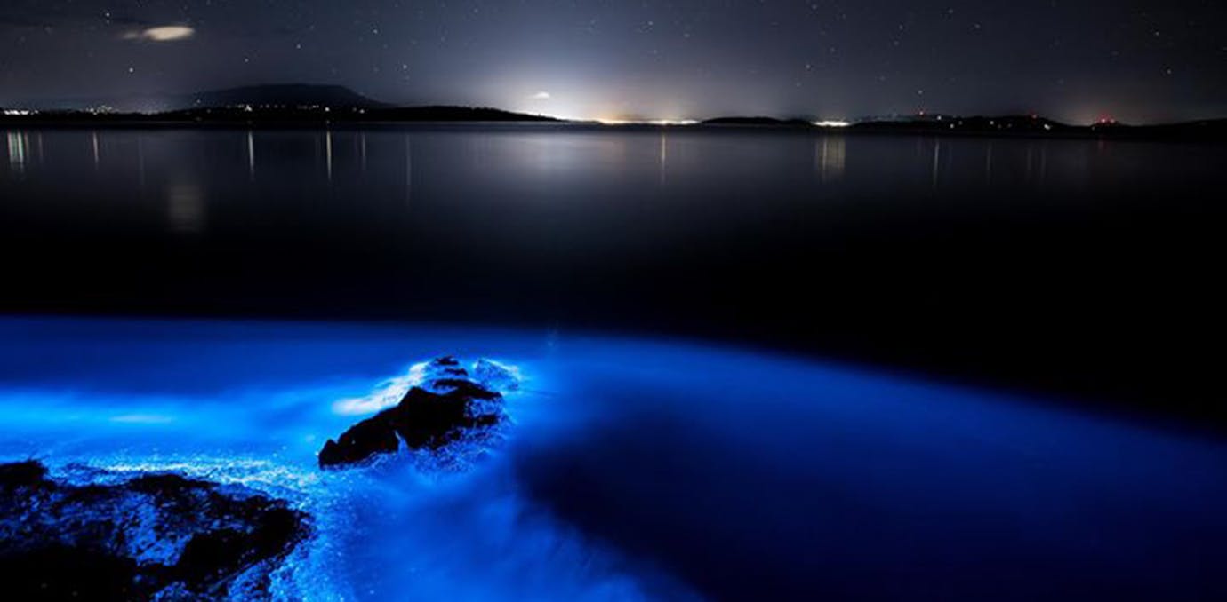 En la costa noroeste del país africano es uno de los lugares más famosos para apreciar este fenómeno. Los brillos azules dentro del agua son provocados por billones de células de planta de plankton llamada: Noctiluca scintillans.