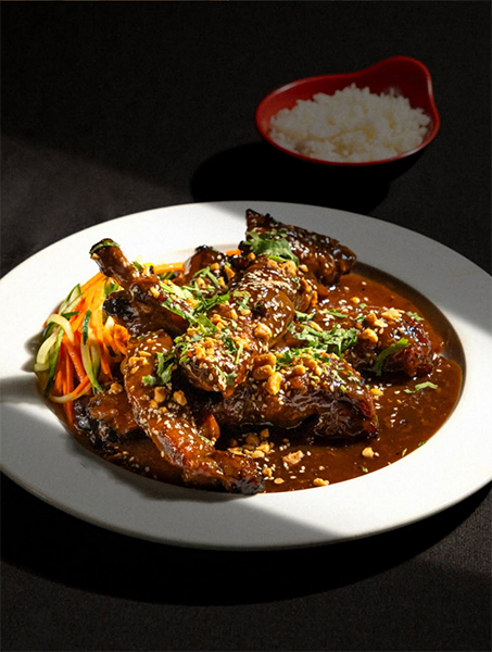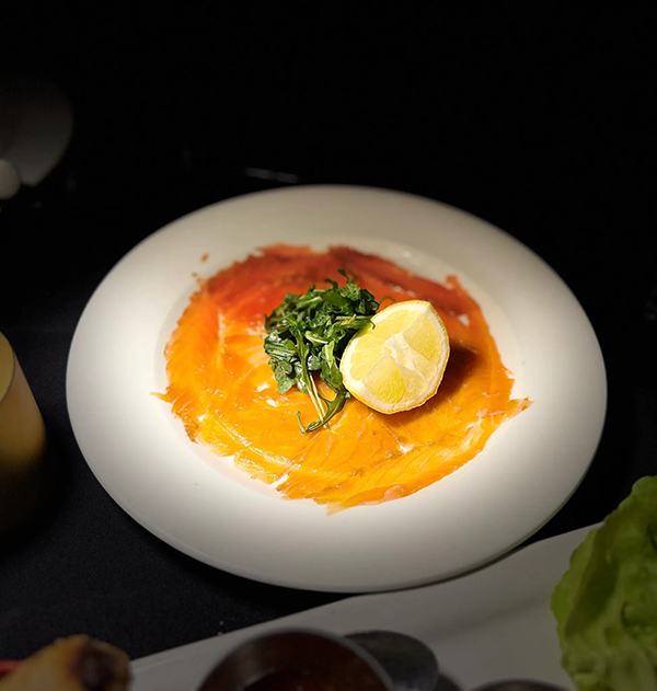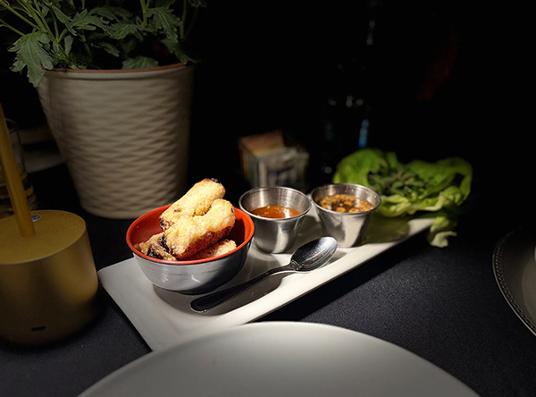 El corazón de Tony’s Bistro es su cocina, que dialoga entre la tradición francesa y los matices del sudeste asiático. Cada plato refleja un equilibrio delicado entre técnica y sensibilidad, entre precisión y espontaneidad. Los rollos primavera se perciben ligeros, frescos, con un toque de hierbas que despierta los sentidos, mientras que las quesadillas de pato se presentan con dulzura contenida en el mango y la cebolla caramelizada, y los cortes de carne y los pescados se preparan con un cuidado que se nota en la textura y en el sabor. La carta no busca impresionar con exceso, sino sostener una coherencia que acompaña la conversación, la mirada al mar y la sensación de tiempo dilatado.
