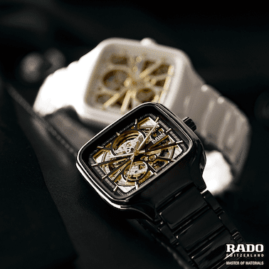 El True Square Open Heart es el único reloj cuadrado de cerámica de alta tecnología que incorpora una esfera esqueletizada, que además es un ícono estrechamente vinculado con Rado que ahora incluye por primera vez una caja de cerámica de alta tecnología inyectada con diseño de monobloque.
